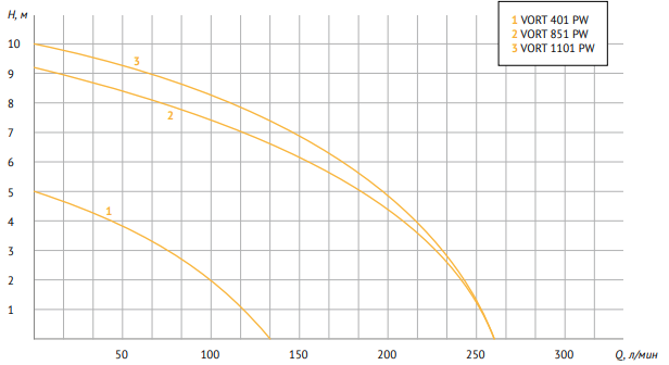 Дренажные насосы для воды от производителя UNIPUMP серии VORTДренажные насосы серии VORT — предназначены для отвода сточных дождевых вод, осушения контейнеров, лодок или яхт, откачивания воды из колодцев и шахт, для перекачивания чистой или грязной жидкости (максимальный размер механических включений — 35 мм), воды, содержащей моющие средства, откачивания жидкости из плавательных бассейнов, для распыления воды и обеспечения ее циркуляции в течение ограниченного промежутка времени. Дренажные насосы имеют герметичный корпус, могут работать частично или полностью погруженными в воду (глубина погружения в перекачиваемую жидкость до 5 метров). Оборудование укомплектовано поплавковым выключателем. Напорно-расходные характеристики