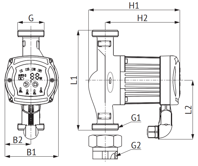 Циркуляционные насосы серии LPA оснащены двигателем с постоянными магнитами и электронным блоком управления, который обеспечивает возможность задавать различные режимы работы насоса (пропорциональный, поддержание постоянного давления, ночное снижение мощности). Блок частотного регулирования позволяет автоматически согласовывать мощность насоса с фактическим перепадом давлений, что обеспечивает высокую энергоэффективность насоса. Насос имеет удобную панель управления. Насосы имеют автоматический режим работы (заводская настройка), который адаптирует насос к потребностям конкретной системы отопления без дополнительных настроек. Насосы серии LPA отличает низкий уровень шума и низкое энергопотребление. Расшифровка маркировки насоса: Первые две цифры обозначают условный проходной диаметр входного и выходного отверстий насоса, вторые две цифры – максимальный напор в метрах, умноженный на десять. Установочные размеры: