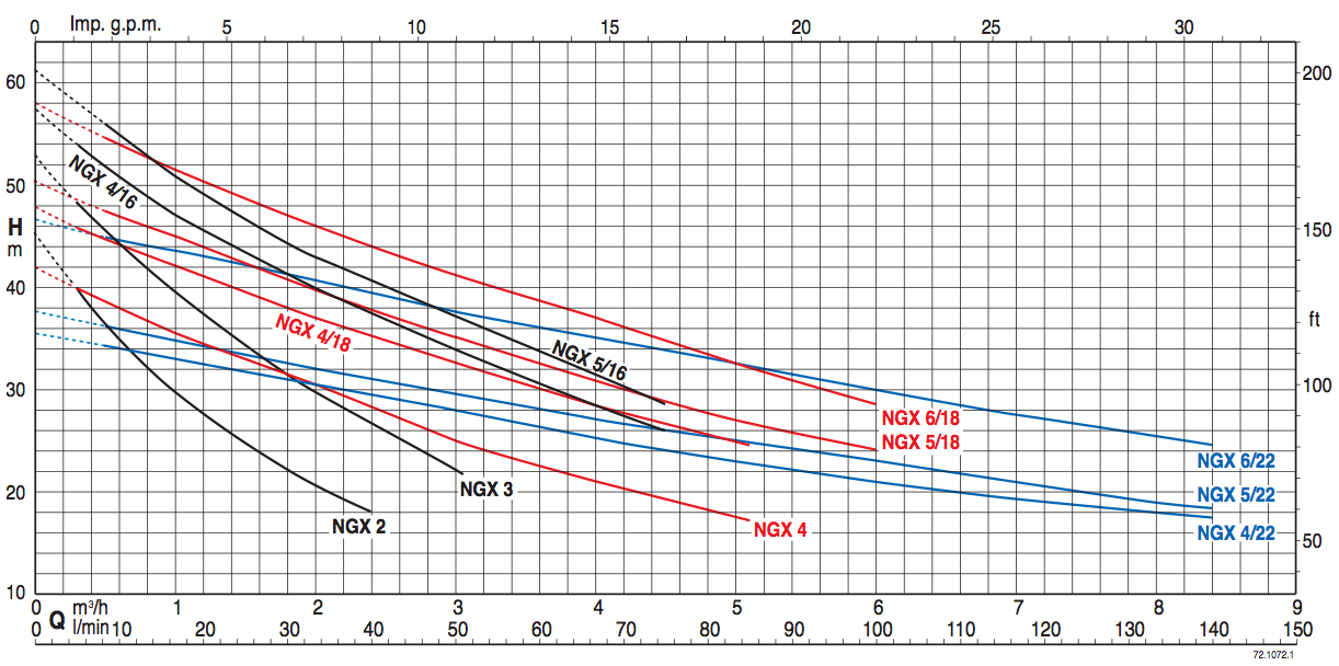Насосы самовсасывающие струйные Calpeda NGXКонструкция Моноблочный самовсасывающий мелкий насос с встроенным эжектором. Применение - Для отвода воды из скважины. Конструкция насоса Calpeda NGXНасос центробежного типа, моноблочной конструкции, имеющий встроенный инжектор и самозаливную систему. В насосе применяется минимальное количество деталей произведенных из пластиковых материалов. Calpeda NGX является бытовым насосом, высокого качества сборки, спроектированный согласно всем требованиям по сбережению окружающей среды. Главными составными данного насоса являются: рабочее колесо, выполненное из латуни, а так же корпус насоса из нержавеющих марок стали. Назначение насоса Насосы Calpeda NGX созданы для подъема жидкости с содержанием воздуха или других газообразных примесей. Для моющих установок, работающих по принципу мытья большой струей воды. Для подачи чистой воды, а так же забора воды с прудов имеющих незначительное загрязнение поверхности водоема. Для увеличения давления в системах распределения водоснабжения (с соблюдением местных требований). Эксплуатационные ограничения - Максимально допустимое конечное давление в корпусе насоса: 8 бар. Технические характеристики: