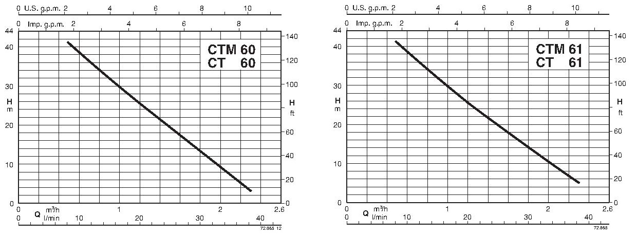 Моноблочные центробежные одноступенчатые насосы Calpeda СТ с периферийным рабочим колесом предназначены для перекачки чистых жидкостей, которые в своем составе не содержат твердых частиц и компонентов, химически агрессивных к материалам оборудования. Благодаря компактной и мобильной конструкции насосы Calpeda СТ отлично подходят для работы в установках повышения давления, установках охлаждения, кондиционирования и циркуляции. Оборудование эффективно используется в промышленности, сфере ЖКХ и в быту. Центробежные одноступенчатые насосы Calpeda СТ изготавливаются из чугуна и бронзы, что обеспечивает их высокую надежность. При соблюдении всех необходимых технических и эксплуатационных параметров индукционный двухполюсной двигатель оборудования мощностью в 0,33 кВт и напряжением в 220В и 380В работает в непрерывном режиме, обеспечивая производительность от 0,48 до 2,3 м³/ч. Количество оборотов в минуту – 2 900. Насосы Calpeda СТ способны формировать напор от 5 до 41 м. Температура перекачиваемой жидкости не более 60 градусов. |