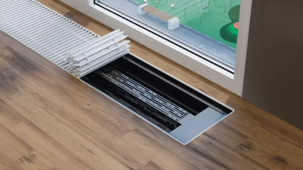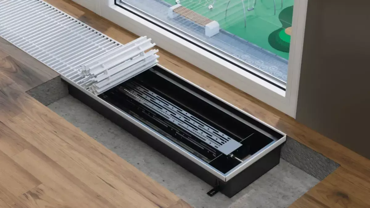 Конвектор электрический встроенный в пол с регулятором мощностиДанный тип конвектора служит для отопления сухих помещений. Конвектор монтируется в конструкцию пола, оставляя на видимой поверхности лишь декоративную решетку, находящуюся в одной плоскости с напольным покрытием. Степень защиты оболочки IP20 по ГОСТ 14254-96. По классу защиты от поражения электрическим током соответствует 1 классу по ГОСТ Р 52161.1-2004. Регулятор мощности используется для изменения напряжения. Регулирование происходит от 0 до 100% мощности конвектора. Максимальная мощность: 4000 Вт (кратковременная для резистивной нагрузки) Регулирование напряжения: переменный ток 0-220 В, начинается от переменного тока 10 В. Защита: анти-пик, от скачков напряжения, RC Поглощение (EOC) Конструктивные особенностиКонвектор VITRON состоит из корпуса, декоративной решётки, декоративной рамки, электронагревательного прибора, внутреннего кожуха и регулятора мощности Витрон . В конструкции конвектора использован электронагревательный прибор ( ТЭН ) в виде металлической трубки, заполненной теплопроводящим электрическим изолятором. Точно по центру изолятора проходит токопроводящая нихромовая нить определенного сопротивления для передачи необходимой удельной мощности на поверхность ТЭН. С левой стороны конвектора расположено цифровое табло и кнопки регулятора мощности. С помощью кнопок можно плавно регулировать мощность конвектора от 0 до 100 %, а цифровое табло подскажет заданный уровень мощности. Стандартный комплект поставки