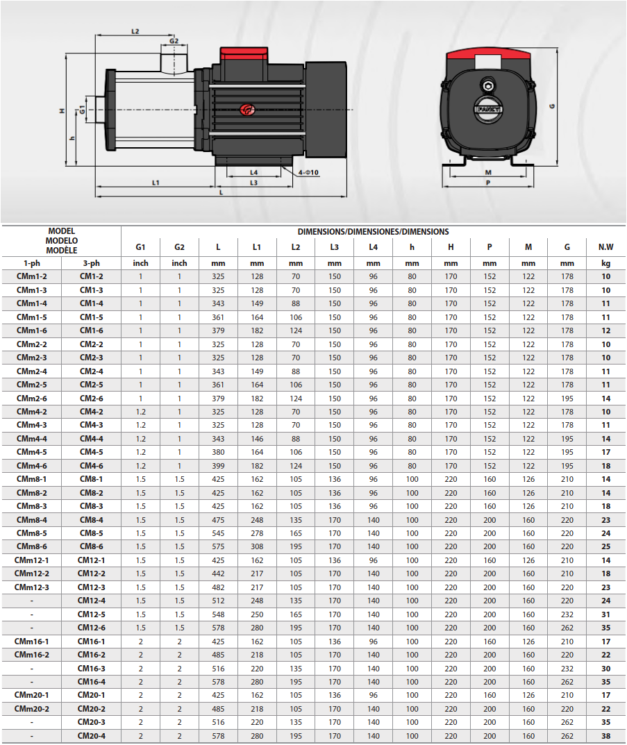 Горизонтальный многоступенчатый насос FANCY серии CMГоризонтальные многоступенчатые центробежные насосы FANCY из нержавеющей стали серии CM предназначены для использования в системах водоснабжения, отопления, кондиционирования, охлаждения, циркуляция холодных и горячих жидкостей, станции водоподготовки и др. Насос FANCY из нержавеющей стали серии CM представляет собой нормальновсасывающий многоступенчатый центробежный насос с осевым резьбовым всасывающим патрубком и радиальным резьбовым напорным патрубком. Модульность изделий FANCY обеспечивает высокие рабочие показатели и увеличивает среднюю наработку насоса. Насос центробежный из нержавеющей стали FANCY серии CM - рабочие параметры: