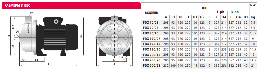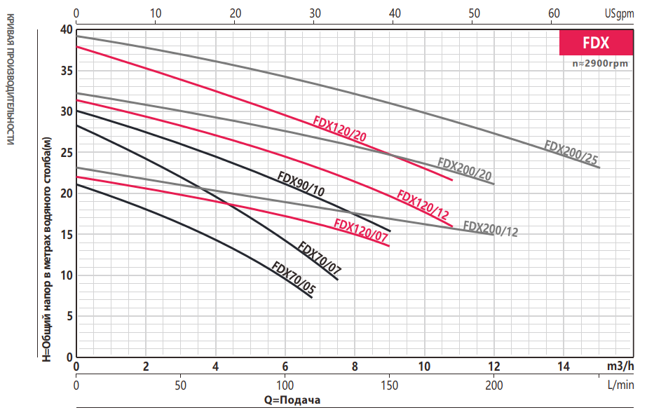 Центробежный одноступенчатый насос FANCY серии FDXЦентробежные одноступенчатые насосы FANCY из нержавеющей стали серии FDX предназначены для использования в системах мойки, для водоснабжения и повышения давления, для водоочистки, для садового орошения, повышение давления и др. Насос FANCY из нержавеющей стали серии FDX представляет собой моноблочный, одноступенчатый, центробежный насос с осевым резьбовым всасывающим патрубком и радиальным резьбовым напорным патрубком. Компактный и пропорциональный дизайн. Обеспечение долговечности и простоты в эксплуатации. Насос центробежный из нержавеющей стали FANCY серии FDX - особенности конструкций: Корпус насоса, рабочее колесо, вал изготовлены из нержавеющей стали AISI 304. Бесшумный энергосберегающий насос FANCY имеет новую конструкцию. Насосы FANCY для жилищно-коммунального сектора: Насосы FANCY из нержавеющей стали серии FDX в различных исполнения разработаны для самых разнообразных нужд ЖКХ: водоснабжение, орошение, теплицы, увлажнители, водообработка, градирни, системы охлаждения, охладители, ионизирование и др. Благодаря высокому КПД насосы FANCY серии FDX имеют самое низкое энергопотребление в своем классе, обеспечивая тем самым возмещение первоначальных затрат в кратчайший срок. Благодаря прочной конструкции насосы FANCY из нержавеющей стали серии FDX долго сохраняют эксплуатационные показатели. Насосы FANCY серии FDX имеют низкий уровень шума, что ведет к повышению уровня комфорта для потребителя. Насосы FANCY из нержавеющей стали серии FDX легки в установке и позволяют пользователю значительно снизить потребление электроэнергии. Насосы FANCY для промышленности и других сфер: Насосы FANCY из нержавеющей стали серии FDX в различных исполнения подходят для различных промышленных применений: окрасочные кабины, системы повышения давления, экструдеры, промывка деталей, теплообработка. Могут использоваться также в пищевых, фармацевтических производствах, производствах напитков и т.д. Насосы FANCY из нержавеющей стали серии FDX способы работать при больших нагрузках. Насосы FANCY имеют длительный срок службы. Условия эксплуатации: Насосы FANCY предназначены для перекачивания чистой, невзрывоопасной, маловязкой жидкости, не содержащей абразивных, твердых или волокнистых включений (чистая вода, минеральная вода, пищевое растительное масло, химически-умерено агрессивные жидкости и др.). Жидкость перекачиваемая насосом FANCY не должна быть агрессивной к нержавеющей стали. Монтаж и эксплуатация насосов FANCY из нержавеющей стали серии FDX: График производительности насосов FANCY серии FDX