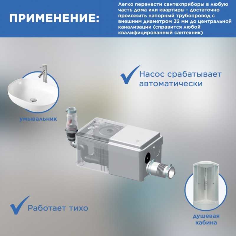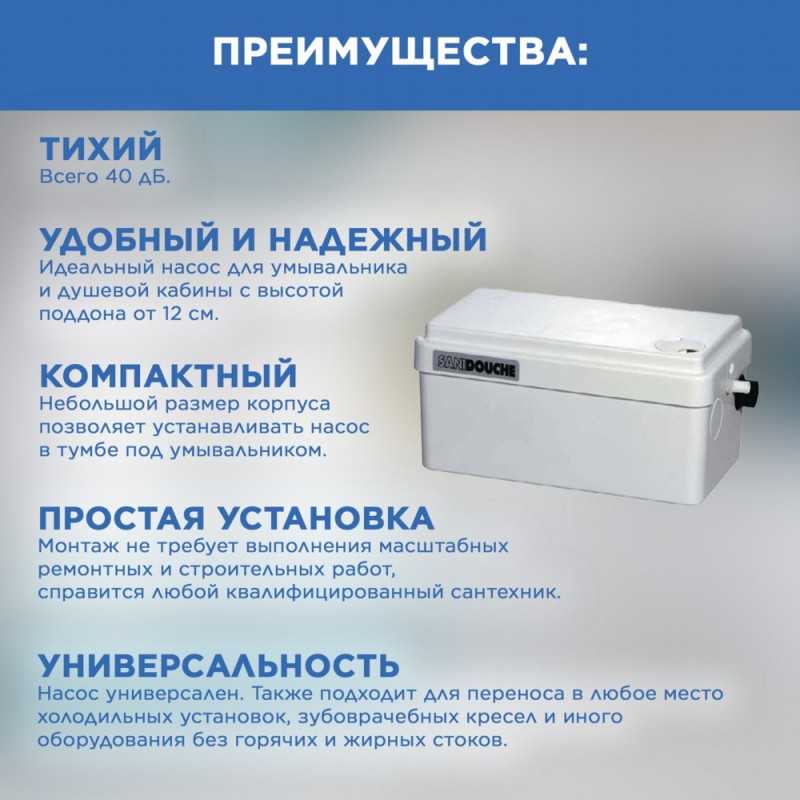 Санитарный насос для душа, который позволяет откачивать стоки от умывальника, душевой кабины или биде.