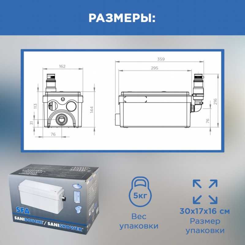 Купить Sanidouche по выгодной цене - надежный санитарный насос SFA для переноса душевой и умывальника