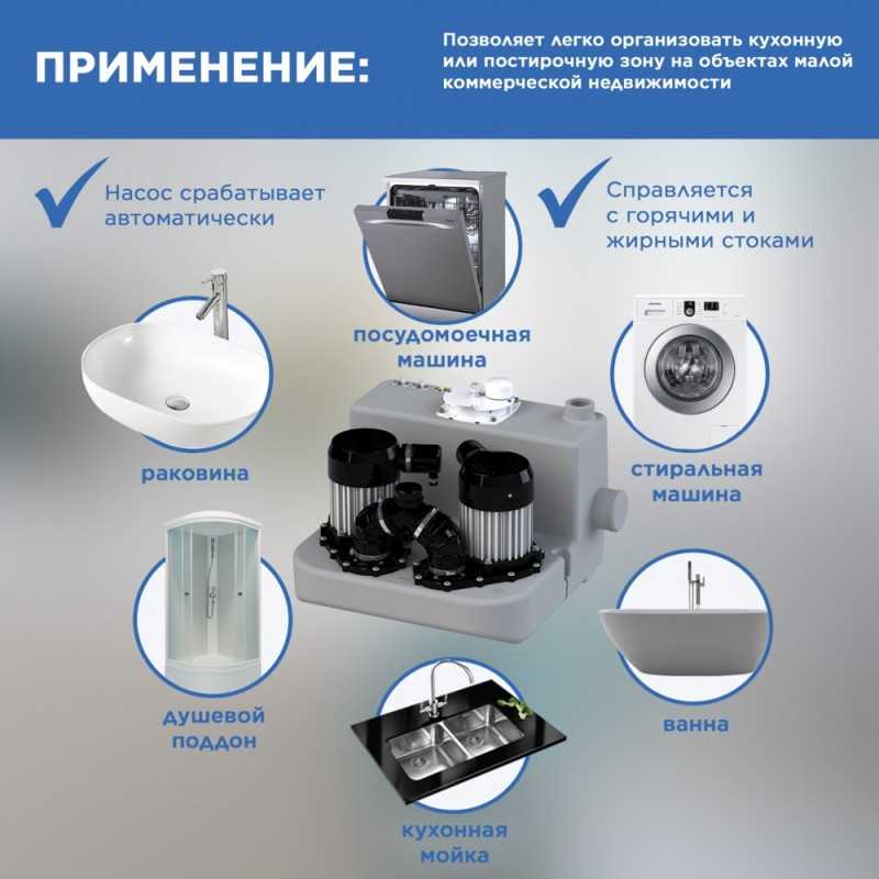 Откачивание по вертикали: 11 м SFA Sanicom 2 — мощная насосная станция SFA для ванны и кухни. Прибор предназначен для интенсивной работы.Sanicom 2 — надежный санитарный насос, который подходит для отведения грязных стоков. Эта мощная насосная станция позволяет откачивать стоки больших объемных расходов от: