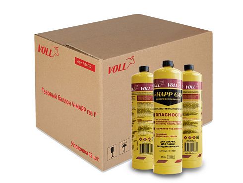 Баллоны VOLL с МАПП газом, упаковка 12 шт. МАПП газ гарантирует стабильность и безопасность в отличие от ацетиленовой смеси.