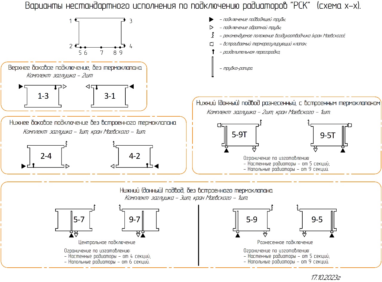 Радиаторы серии РСК 1 от КЗТО гигиеничны в эксплуатации и обладают повышенной теплоотдачей. Консультация специалиста.Радиаторы отопления серии РСК рекомендованы для применения в помещениях с повышенными санитарно-гигиеническими требованиями. Данная модель — улучшенная версия радиаторов серии РС — обладает теми же техническими характеристиками и более привлекательным дизайном. Изогнутые трубки присоединены к верхнему и нижнему коллектору круглого сечения. За счет изгиба трубок с теплоносителем их количество, а соответственно, и общая теплоотдача увеличиваются. Особенности конструкции обеспечивают простоту в очистке от пыли и гарантируют высокую гигиеничность при эксплуатации. Радиаторы этой серии масштабируются на этапе производства, за счет объединения двух, трех или четырех модулей можно получить прибор с большим количеством трубок для высокоэффективного обогрева. Толщина стенок в радиаторах РСК увеличена по сравнению с аналогичными импортными приборами, что гарантирует долгий срок службы приборов. Радиаторы РСК имеют модификации с межцентровым расстоянием от 300 до 2000 мм. Длина радиаторов — до 2025 мм. Радиаторы выпускаются с боковым и нижним подключением. Базовый цвет — белый глянцевый RAL 9016. Выбрать любой другой цвет радиатора можно по каталогу RAL. Гарантия 5 лет. Купить радиаторы КЗТО РСК по ценам от производителя.