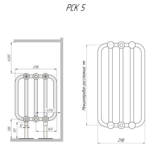 Радиаторы этой серии масштабируются на этапе производства, за счет объединения двух, трех или четырех модулей можно получить прибор с большим количеством трубок для высокоэффективного обогрева. Толщина стенок в радиаторах РСК увеличена по сравнению с аналогичными импортными приборами, что гарантирует долгий срок службы приборов. Радиаторы РСК имеют модификации с межцентровым расстоянием от 300 до 2000 мм. Длина радиаторов — до 2025 мм. Радиаторы выпускаются с боковым и нижним подключением. Базовый цвет — белый глянцевый RAL 9016. Выбрать любой другой цвет радиатора можно по каталогу RAL. Гарантия 5 лет.