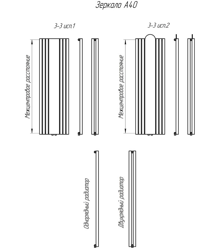 Купить радиатор отопления Зеркало А40 от производителя Кимрского Завода Теплового Оборудования (КЗТО)Модель радиаторов Зеркало производится в России компанией KZTO (КЗТО). Завод оснащен европейским оборудованием, в производстве используются высококачественные материалы. Конструкция представляет собой модификации приборов Гармония (Зеркало), Гармония А40 (Зеркало А40), Параллели (Зеркало П) и Соло (Зеркало С), которая декорирована зеркалом во всю высоту радиатора. Возможен вариант исполнения радиатора Зеркало со встроенным шкафчиком. Температура теплоносителя до 130 °С. Исполнение настенное либо напольное. Радиаторы отопления серии Зеркало А40 - дизайнерская линейка отопительных приборов от КЗТО. Бесплатная консультация специалиста.