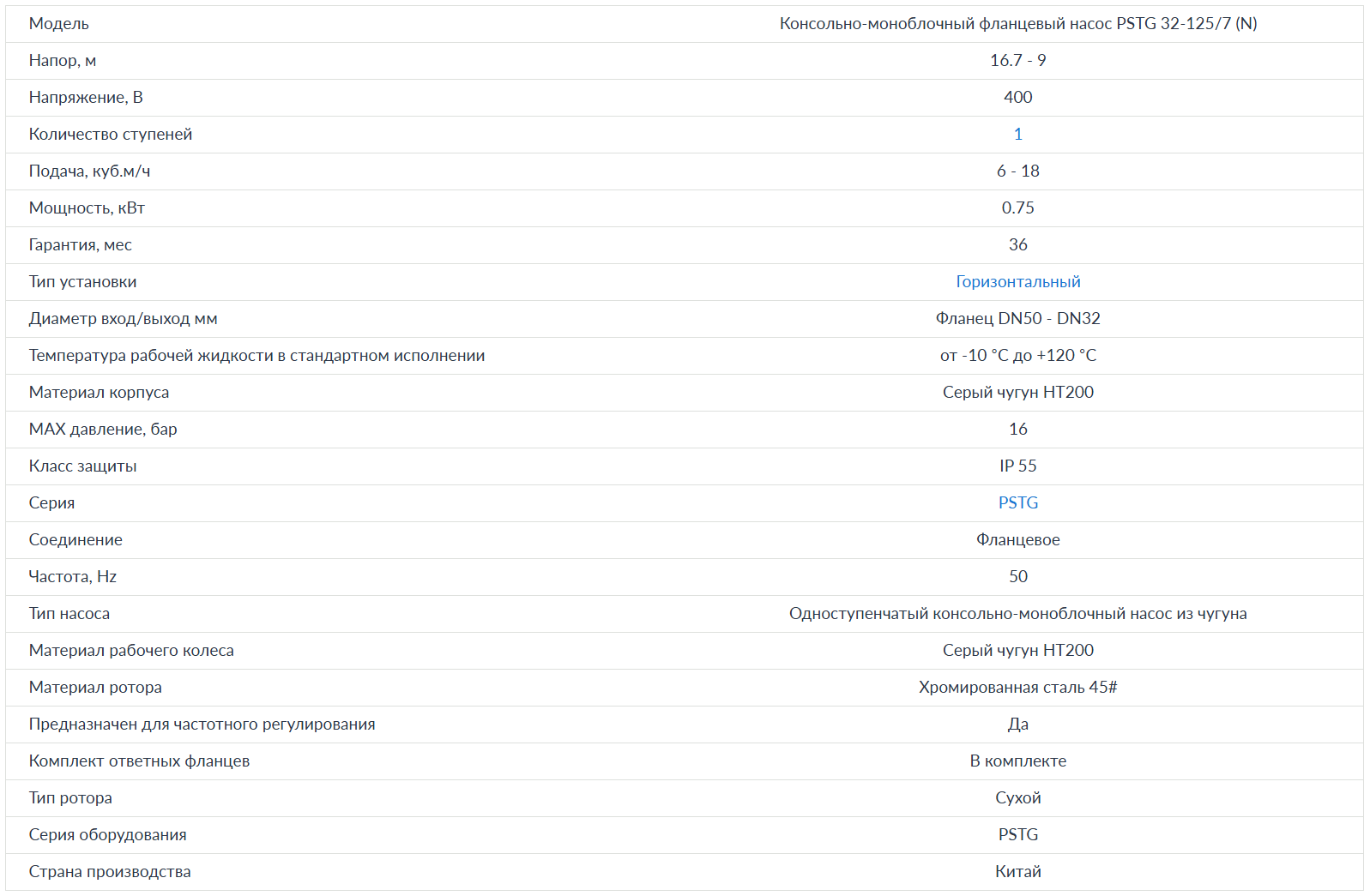 Консольно-моноблочный насос PURITY PSTG 32-125/7 (N)Консольно-моноблочный фланцевый насос PSTG 32-125/7 (N), Артикул: 100602773Для перекачивания жидкостей, не агрессивных по отношению к материалам насоса. Рекомендованы для использования в системах водоснабжения, на станциях повышения давления, в противопожарных установках, в ирригации, в промышленности, для циркуляции воды в климатических установках, в сельском хозяйстве. Характеристики PSTG 32-125/7 (N)
