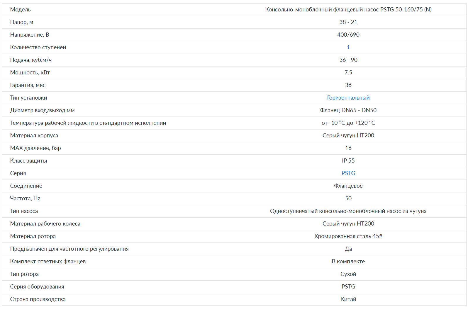 Консольно-моноблочный насос PURITY PSTG 65-125/40 (N)Консольно-моноблочный фланцевый насос PURITY PSTG 65-125/40 (N), Артикул: 100602805Для перекачивания жидкостей, не агрессивных по отношению к материалам насоса. Рекомендованы для использования в системах водоснабжения, на станциях повышения давления, в противопожарных установках, в ирригации, в промышленности, для циркуляции воды в климатических установках, в сельском хозяйстве. Характеристики PURITY PSTG 65-125/40 (N)