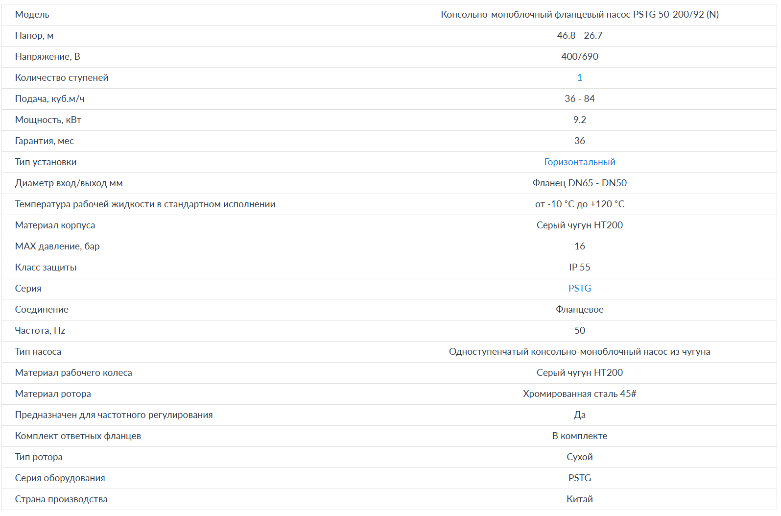 Консольно-моноблочный фланцевый насос PSTG 50-200/92 (N), Артикул: 100602800Для перекачивания жидкостей, не агрессивных по отношению к материалам насоса. Рекомендованы для использования в системах водоснабжения, на станциях повышения давления, в противопожарных установках, в ирригации, в промышленности, для циркуляции воды в климатических установках, в сельском хозяйстве. Характеристики PURITY PSTG 50-200/92 (N) |