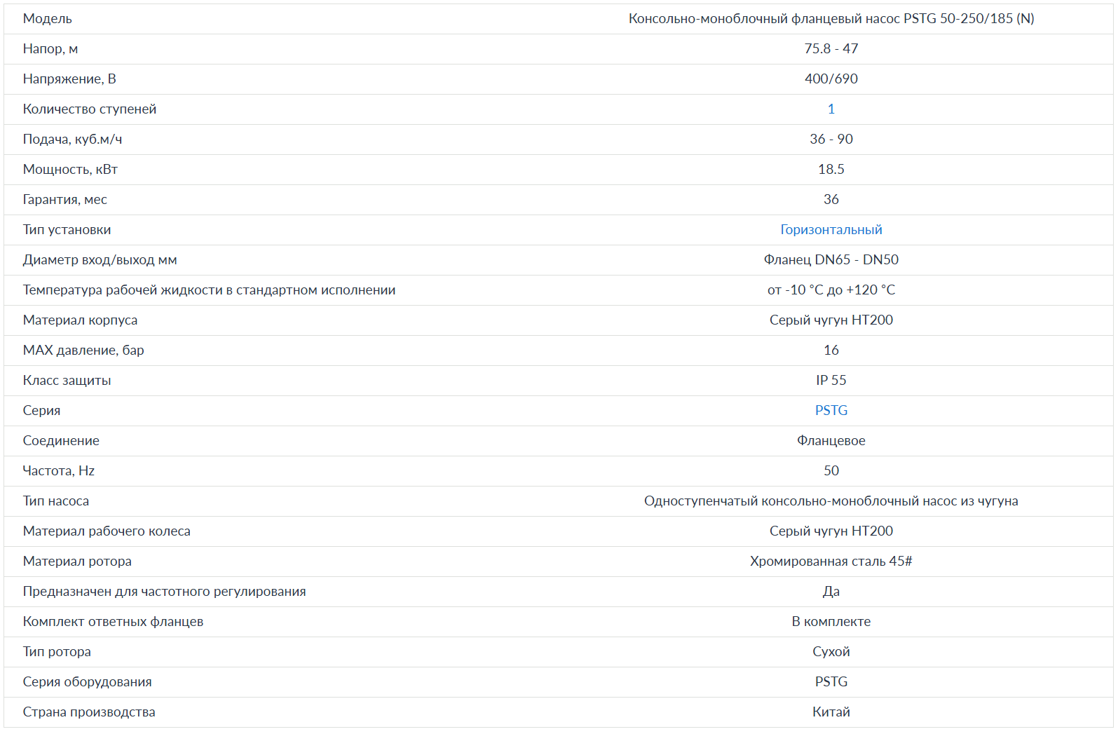 Консольно-моноблочный фланцевый насос PSTG 50-250/185 (N), Артикул: 100602804Для перекачивания жидкостей, не агрессивных по отношению к материалам насоса. Рекомендованы для использования в системах водоснабжения, на станциях повышения давления, в противопожарных установках, в ирригации, в промышленности, для циркуляции воды в климатических установках, в сельском хозяйстве. Характеристики PURITY PSTG 50-250/185 (N)