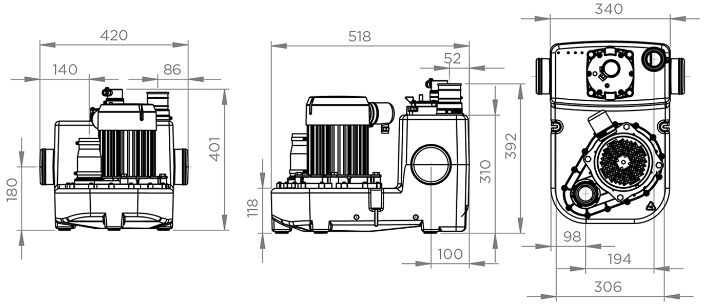 Насос оснащен системой измельчения Pro X K2 и обеспечивает отвод стоков через трубу малого диаметра 50 мм.