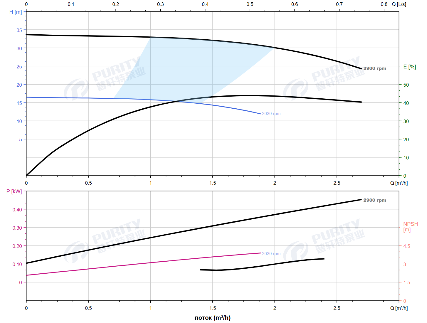 Насос вертикальный многоступенчатый PURITY PVT 2-4 (N)Вертикальный многоступенчатый насос Purity PVT предназначен для промышленных систем обработки, промывки и очистки, для перекачки слабых растворов, кислот и щелочей, для систем фильтрации, повышения давления воды, водоподготовки, для систем отопления, вентиляции и кондиционирования, для рригации, для противопожарных систем и т.д. Корпус и рабочие колеса выполнены из нержавеющей стали и чугуна, что обеспечивает прочность и устойчивость к образованию коррозии. Технические характеристики PURITY PVT 2-4 (N)