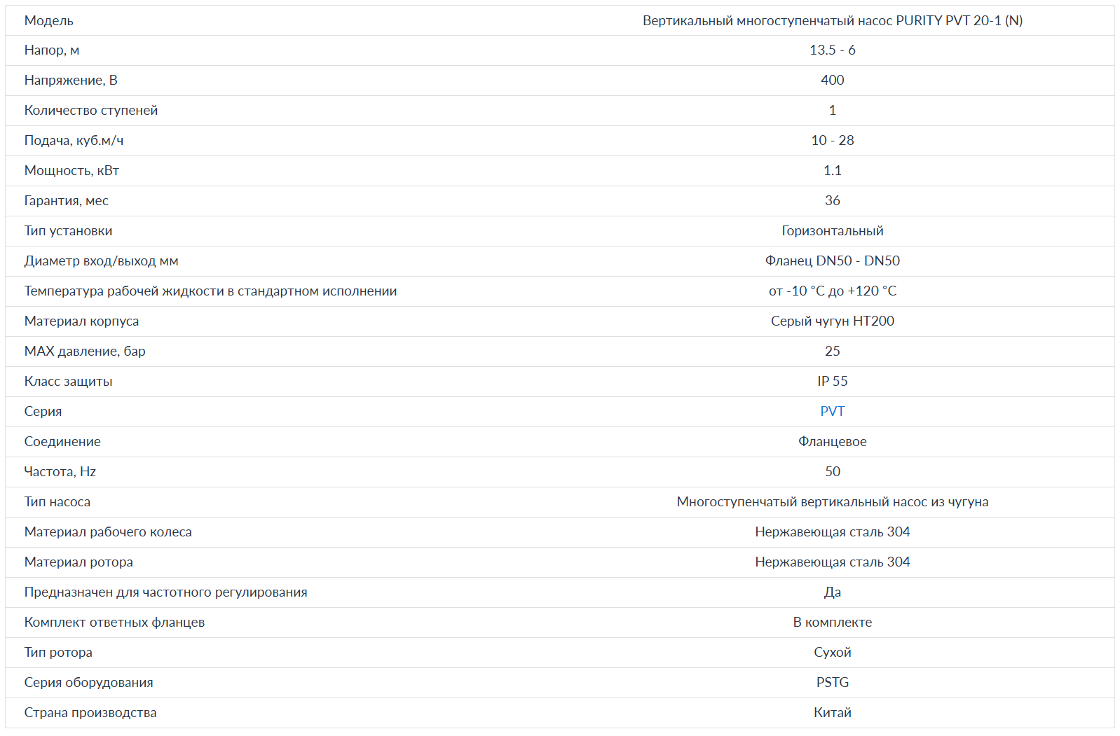 Вертикальный насос PURITY PVT 20-1 (N)