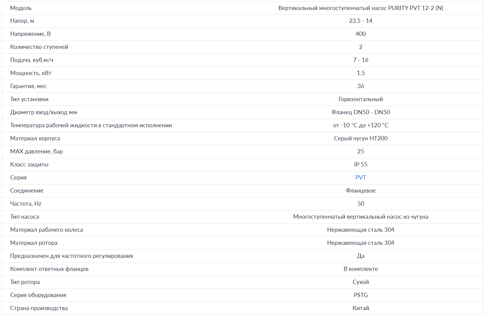 Вертикальный насос PURITY PVT 12-2 (N)