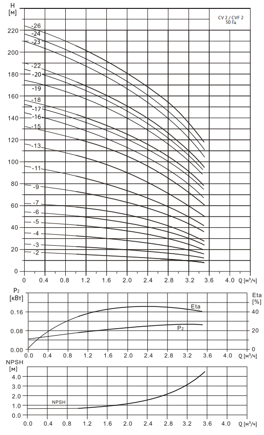 Диаграммы характеристик CV 2-2 (IE3)