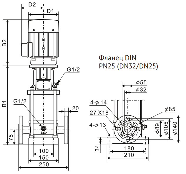 Насосы CV представляют собой вертикальные многоступенчатые центробежные насосы с нормальным всасыванием со стандартным электродвигателем.