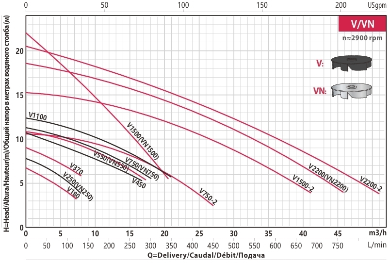 График производительности насосов FANCY серии V
