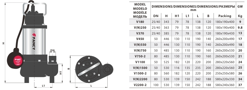 Канализационные погружные насосы FANCY серии VN поставляются в готовом к работе виде. Погружной насос FANCY серии VN удобен при монтаже и обслуживании. В комплектацию поставки входит инструкция по эксплуатации и гарантийный талон. Гарантия на все насосное оборудование FANCY составляет 2 года.