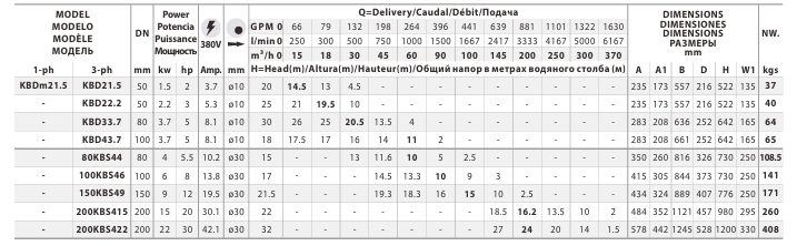 Технические данные насосов FANCY серии KBD