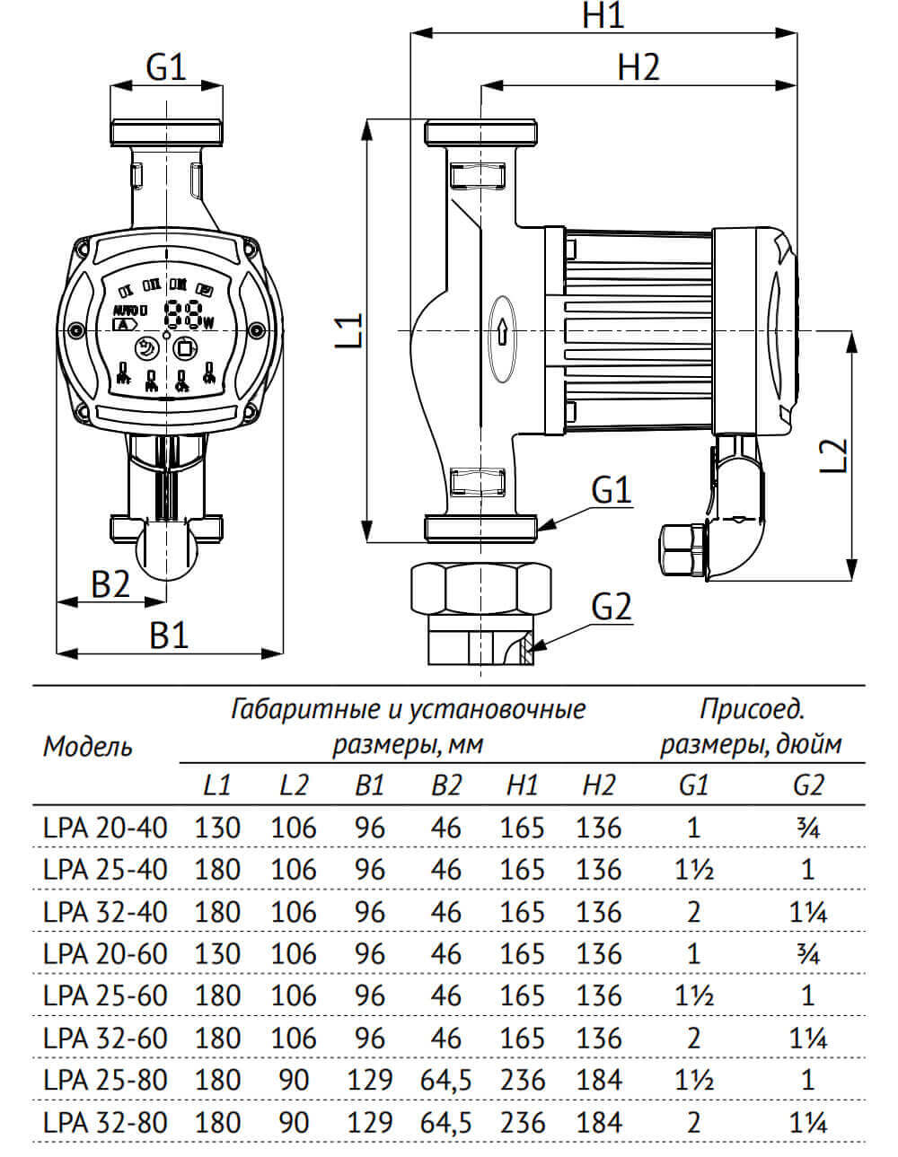 Насосы серии LPA 20-40 B — предназначены для создания принудительной циркуляции теплоносителя в одно- или двухтрубных бытовых системах отопления и горячего водоснабжения.