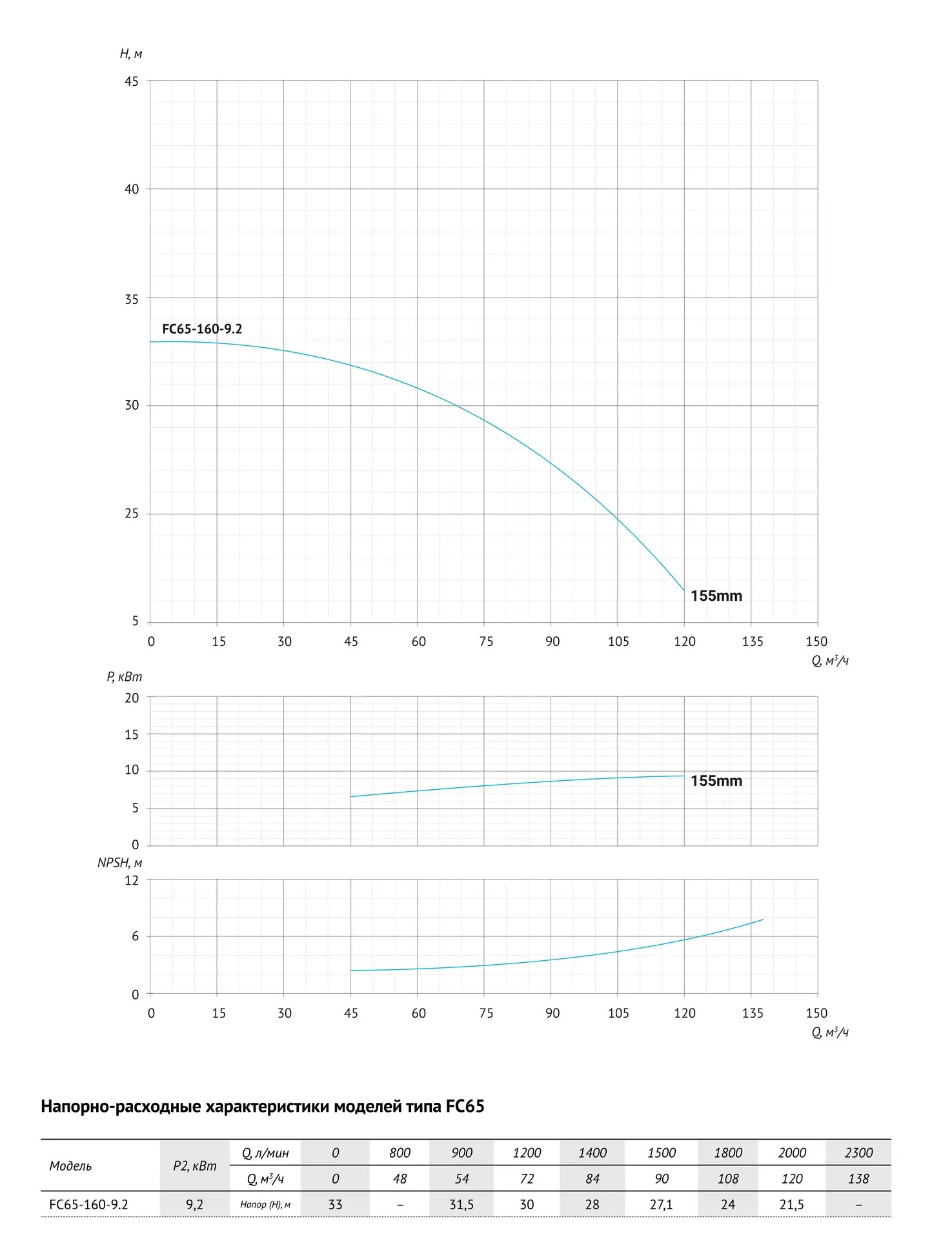 Технические характеристики UNIPUMP FC65-160-9.2