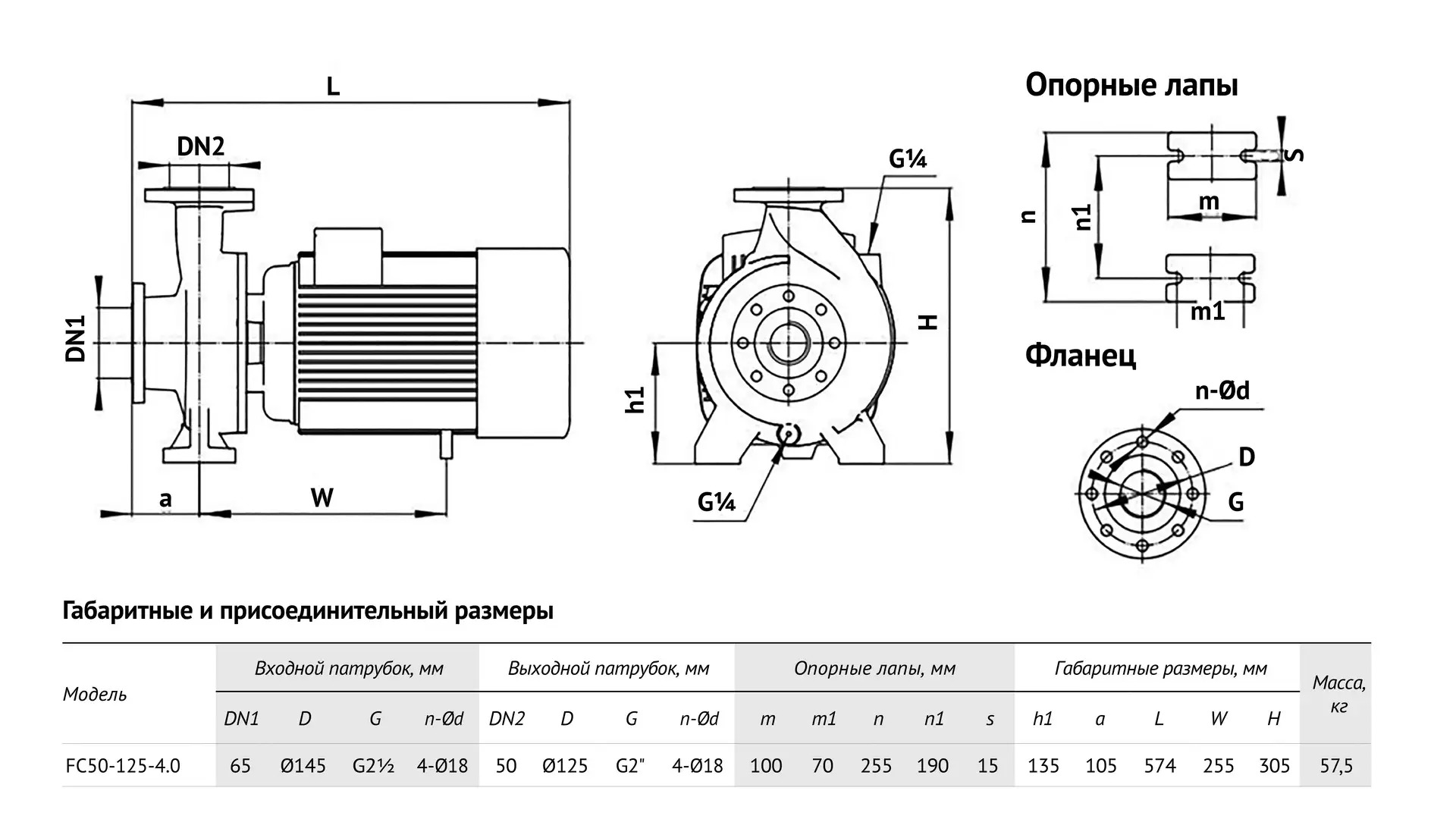Консольно-моноблочный насос FC50-125-4 предназначен для перекачивания чистой воды и неагрессивных к материалам насоса жидкостей, сходных по свойствам с водой и не содержащих абразивных или волокнистых включений.
