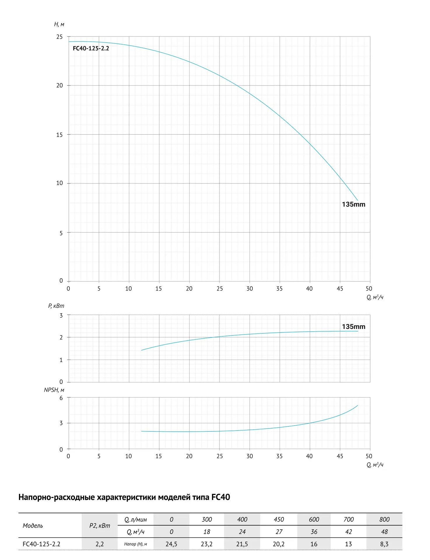 Технические характеристики UNIPUMP FC40-125-2.2