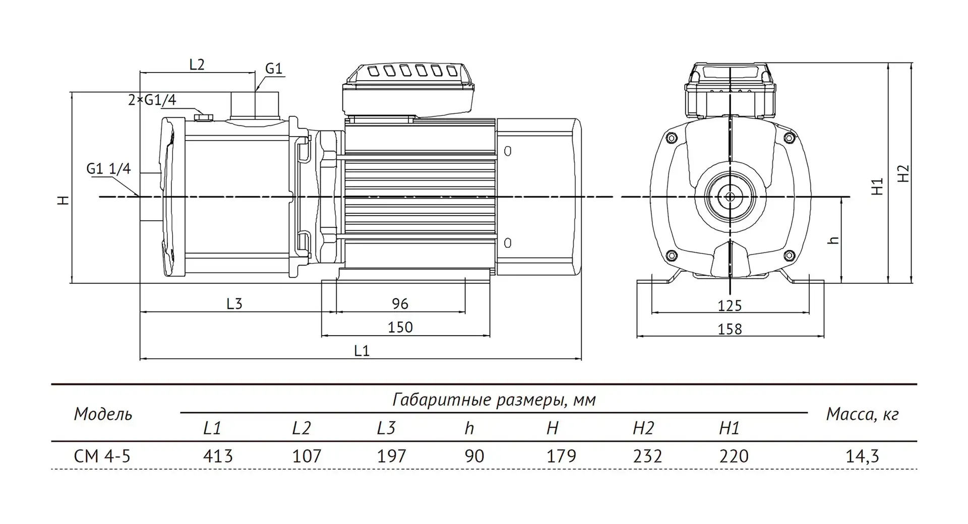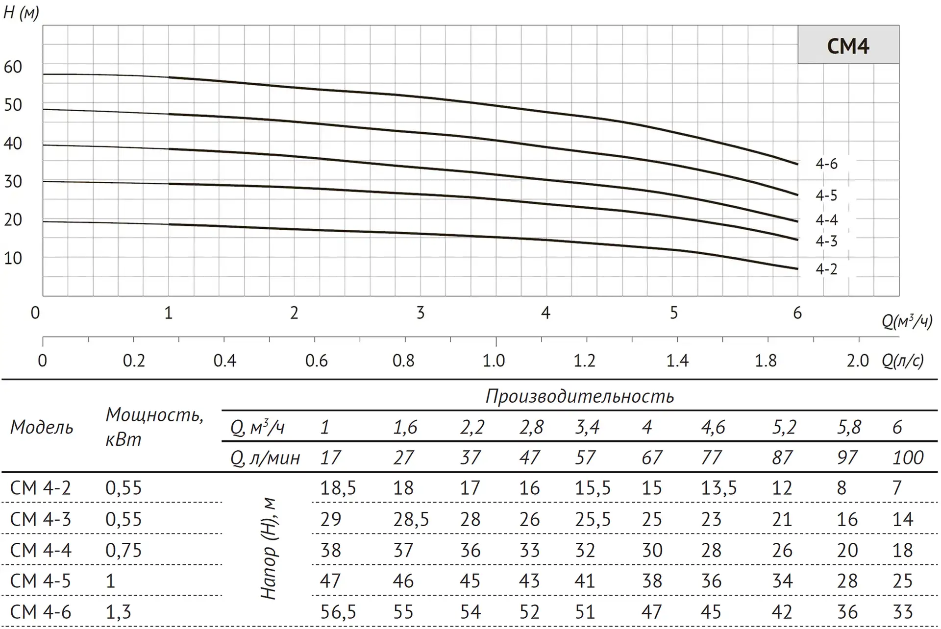 Размеры и графики UNIPUMP CM 4-5