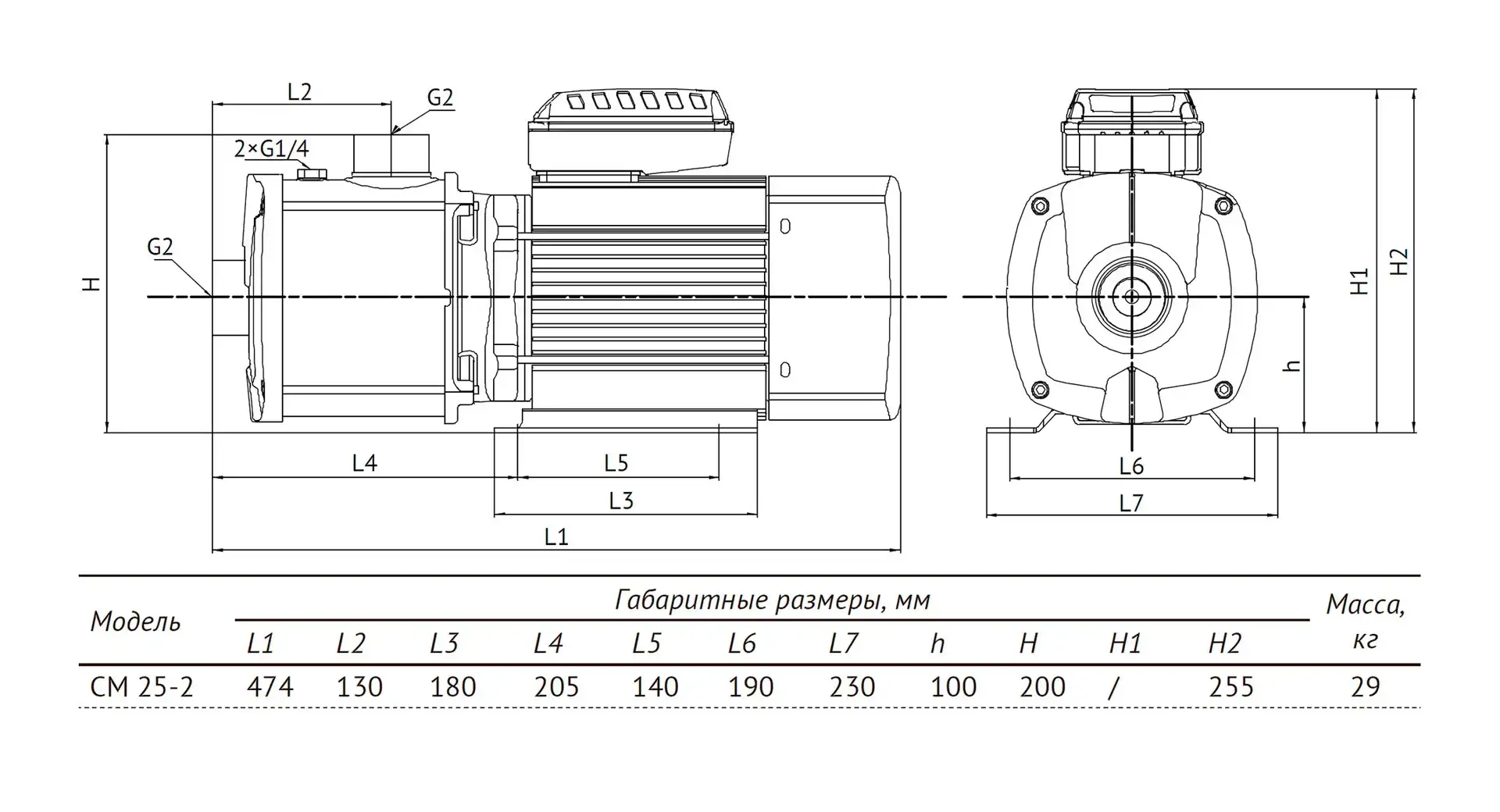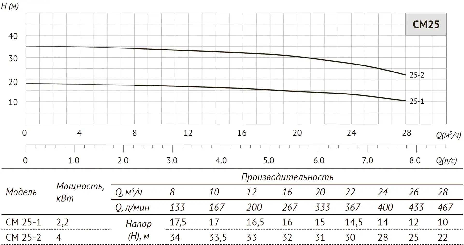 Размеры и графики UNIPUMP CM 25-2