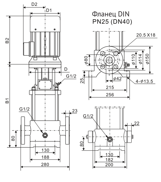 Насос состоит из основания и головной части. Промежуточные камеры и цилиндрический кожух соединены между собой, а также с основанием и головной частью при помощи стяжных болтов. Всасывающий и напорный патрубки находятся в основании насоса и расположены соосно (конструкция «ин-лайн»), что позволяет устанавливать насос на горизонтальном трубопроводе. Все насосы оснащаются необслуживаемым торцевым механическим уплотнением вала картриджевого типа.