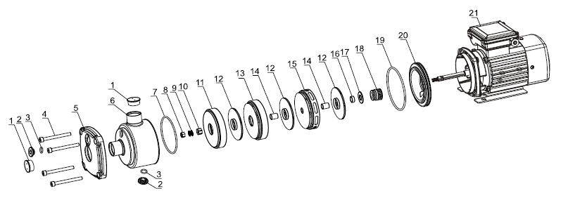Насосы CMI оснащаются электродвигателями закрытого типа с вентиляторным охлаждением. Ча- стота вращения вала составляет 2900 об/мин, мощность - от 0,25 до 4,0 кВт.