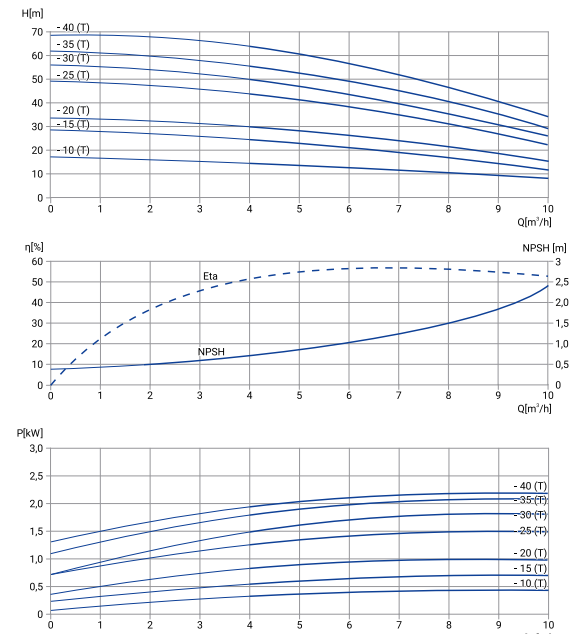 Температура перекачиваемой жидкости должна находится в диапазоне от -20 до +120 °С. Максимальное рабочее давление составляет 10 бар.