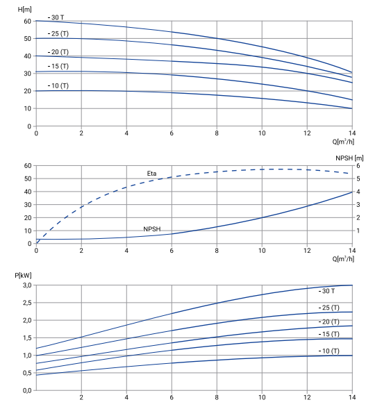 Насосы CMI оснащаются электродвигателями закрытого типа с вентиляторным охлаждением. Ча- стота вращения вала составляет 2900 об/мин, мощность - от 0,25 до 4,0 кВт.