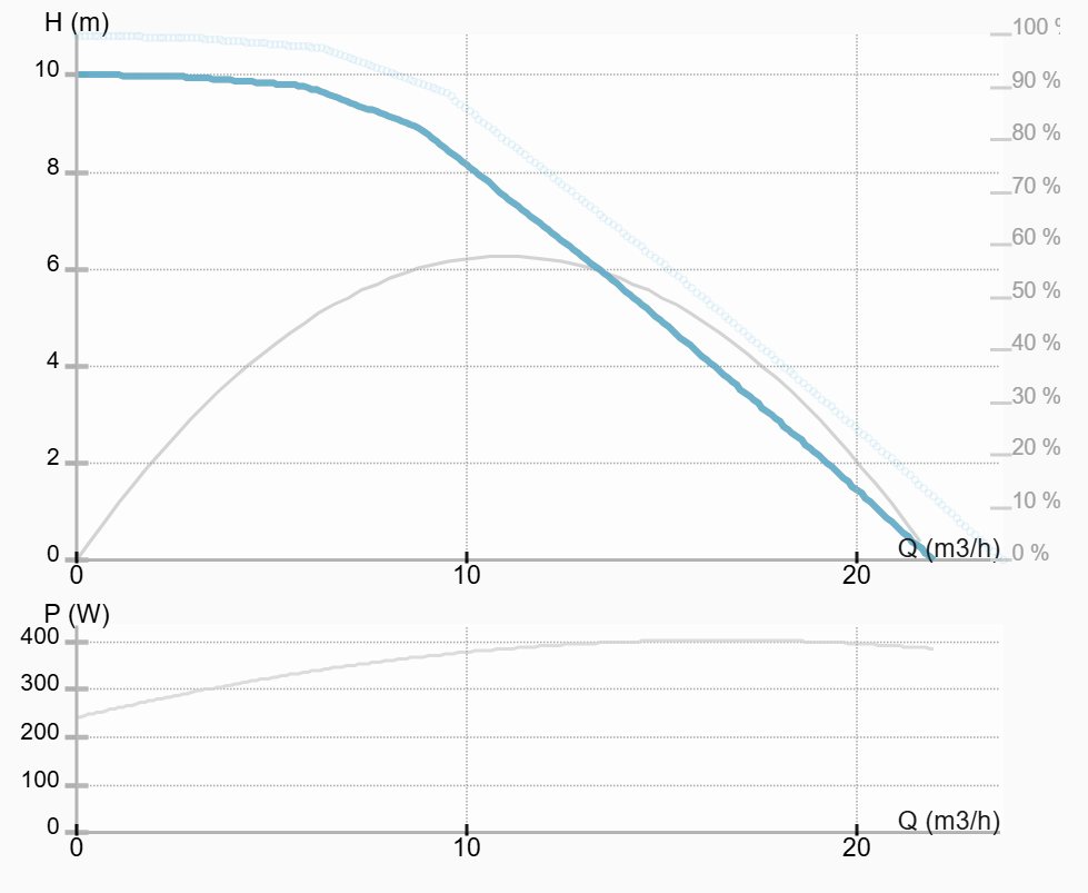 - значения расхода (м3/час), потребляемой мощности (Ватт), напора (м), скорости вращения (об/мин)