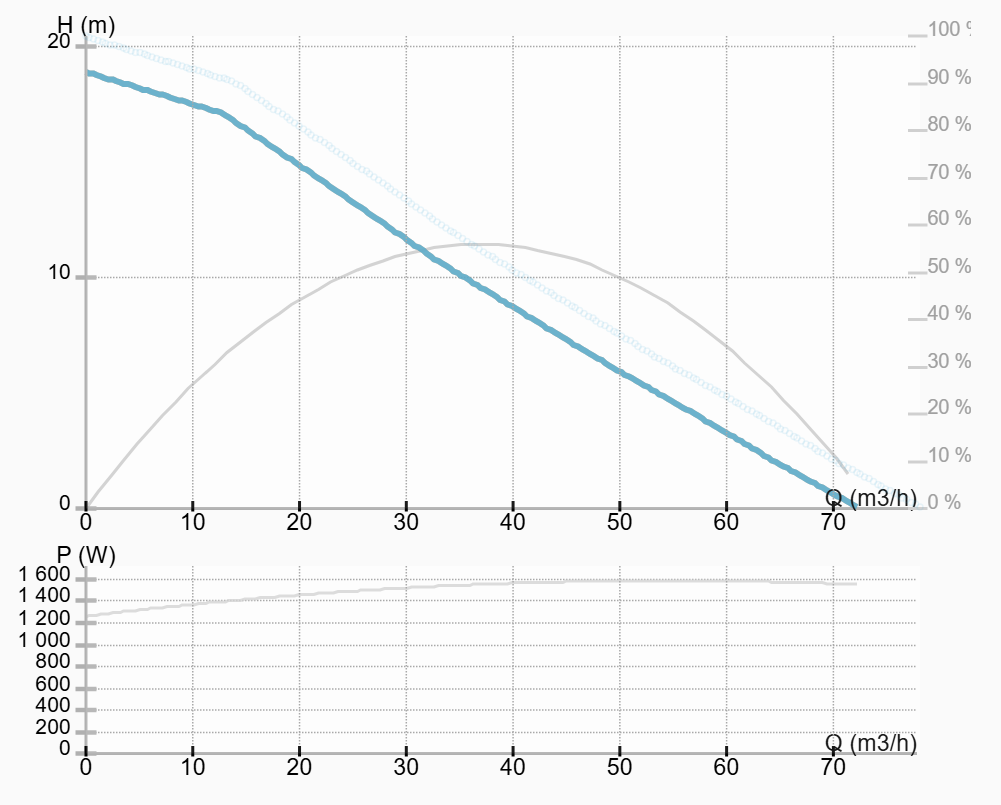 - значения расхода (м3/час), потребляемой мощности (Ватт), напора (м), скорости вращения (об/мин)
